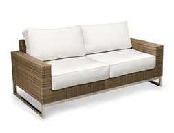 The Palms Collection features premium Viro® all-weather wicker over 304-grade stainless steel leg frames. The design is simple and contemporary with a moderate scale and comfortable sit. Dining table tops are fabricated from graphite Tekwood in a "Nelson bench" style.